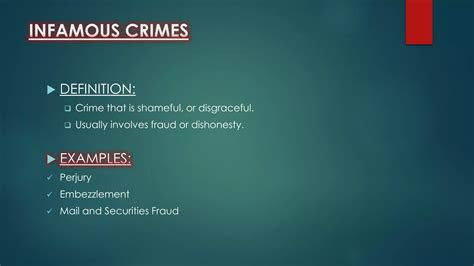 It is important to remember that an infamous crime is not just any crime that is widely known or talked about. Rather, it is a specific type of crime that carries with it certain legal consequences and societal implications.